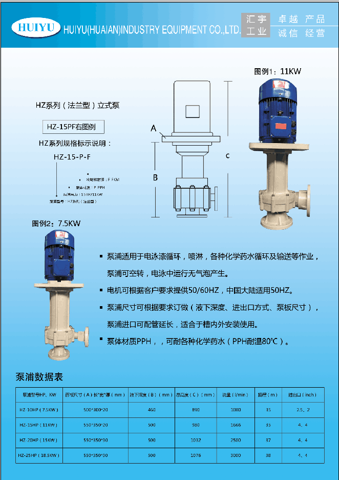 耐腐蝕立式泵適用于槽內外安裝,泵浦主體可耐各種酸堿性化學藥水,泵浦可以長期空轉而不會損壞任何配件,在電泳及電鍍中液體中不會產生氣泡。泵浦運轉時可以通過5MM以下顆粒。泵浦進出口及安裝板可以根據要求訂做,如進出口法蘭,由令,螺紋等。